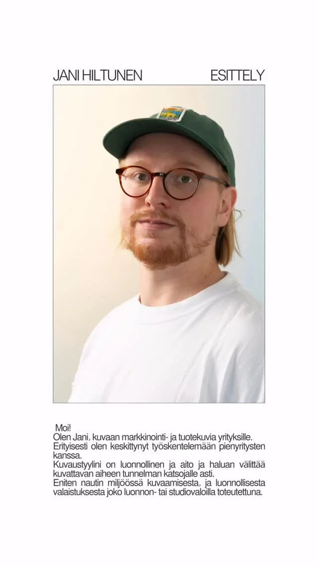 Olen Jani, kuvaan markkinointi- ja tuotekuvia yrityksille.